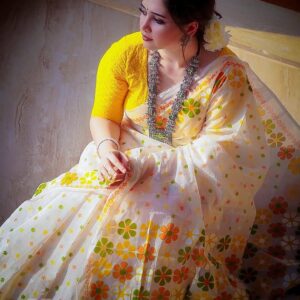 🧵 Tassel Border Design: Enhanced with elegant orange tassels and a floral-embroidered edge that adds traditional flair.