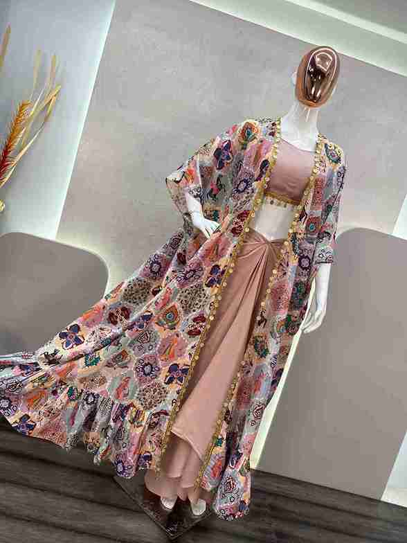 DESIGNER FANCY WESTERN STYLE FIONA SILK PRINTED AND COIN LACE WORK KOTI, CHOLI WITH WESTERN BOTTOM