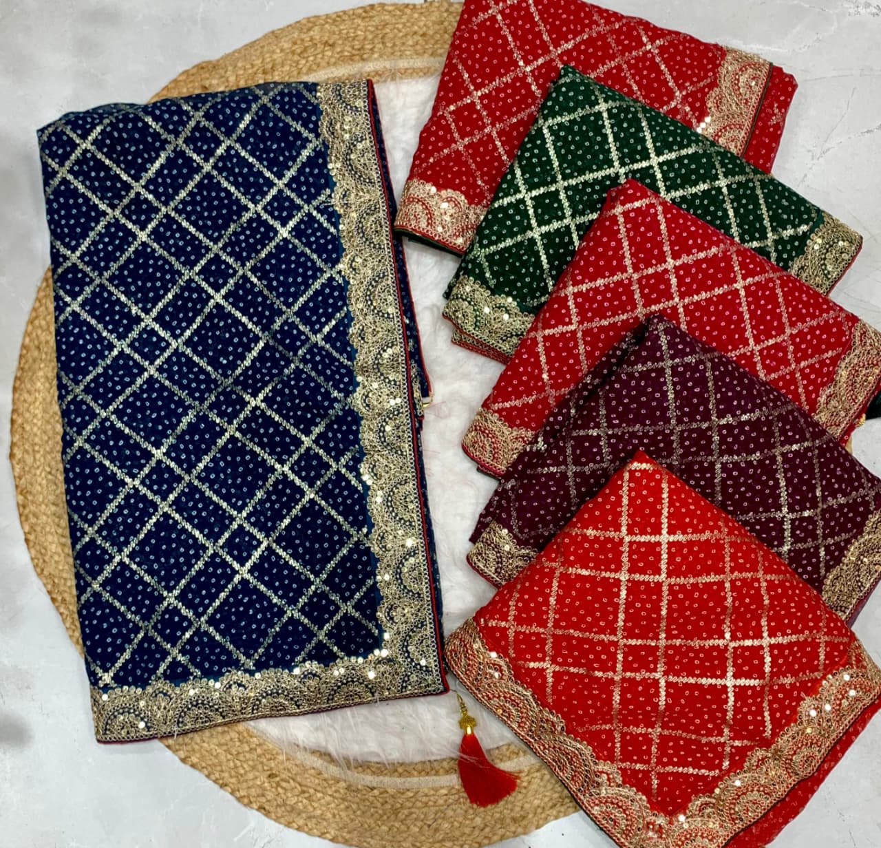 Details:-FANCY BANDANI SAREE WITH EMBORIDERY AND SEQUENCE WORK BEAUTIFUL SAREE😍