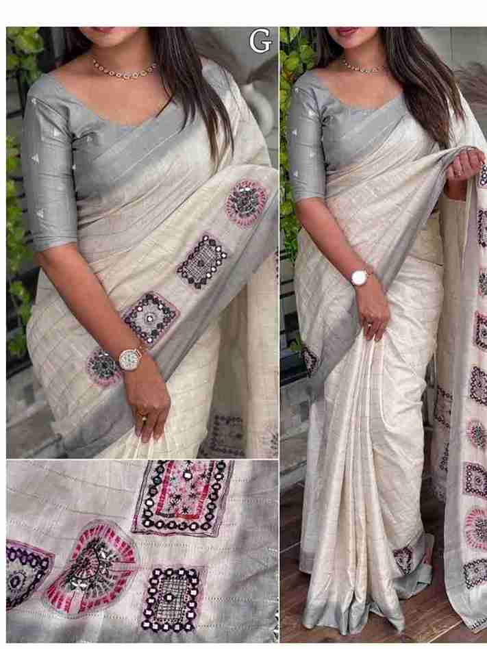 Fine beautiful cotton linen saree with gamthi mirror work and beautiful