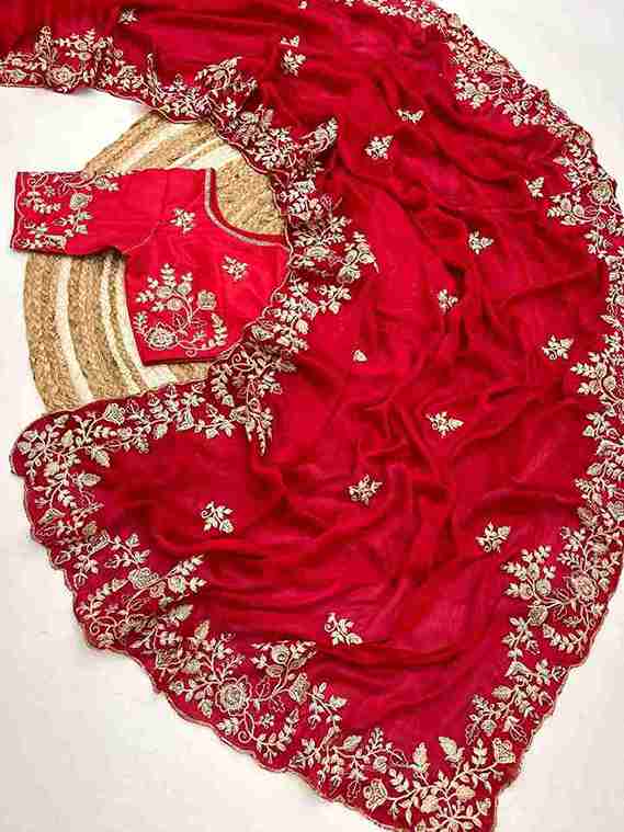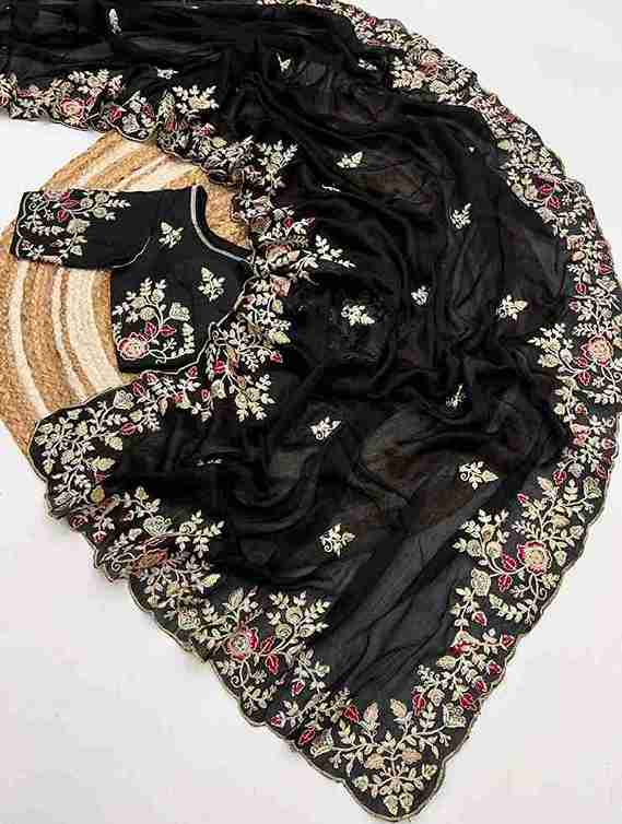Pure Satin Georgette Saree with premium Coding Sequence embroidery all over the Saree with cut Border